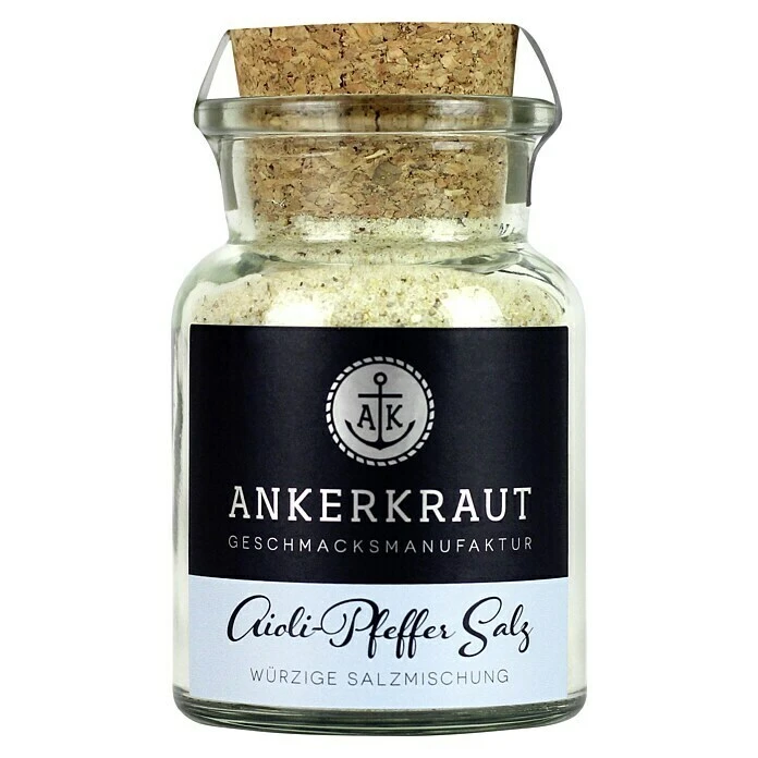Das Ankerkraut Aioli-Pfeffer Salz ist ein einfaches, aber vielseitiges Gewürz. Das puristische Gewürz aus Meersalz, weißem Pfeffer und Knoblauch eignet sich besonders gut zum direkten Würzen von Steaks oder für eine leckere Steakbutter ohne Kräuter, kurzum für denjenigen, der es gerne einfach hält.
