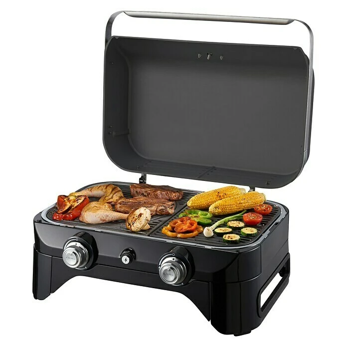 Der Campingaz Gasgrill Attitude 2100 LX ist ein perfekter Gasgrill für Unterwegs. Trotz seinen kompakten Abmessungen überzeugt er mit einem 58 x 36 cm großen, emailliertem Gusseisen Grillrost, das von 2 Brennern mit 5 KW Leistung befeuert wird. Zusätzlich lässt sich der Rost mit den Campingaz Culinary Modular Einsätzen erweitern, sodass der Grill noch mehr Zubereitungsmöglichkeiten bietet. Ein Deckelthermometer gibt Auskunft über die Temperatur im Innern des Grills, der Deckel aus Aluminiumspritzguss, sorgt dafür dass die Temperatur konstant bleibt. Gestartet wird der Grill sicher und einfach über eine elektronische Zündung. Nach dem Grillen lässt er sich problemlos Reinigen, da viele Teile ausbaubar sind. Einmal gereinigt ist er schnell wieder bereit für den nächsten Ausflug oder die nächste Campingtour.