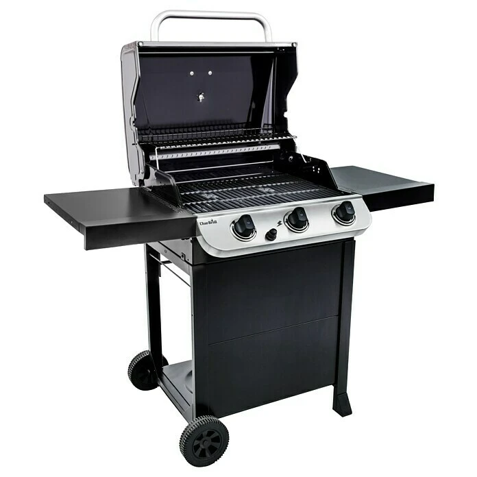 Der Char-Broil Gasgrill Convective 310 B ist ideal für eine Grillparty mit Familie und Freunden. Mit seinen 3 Edelstahlbrennern, die über eine elektronische Zündung gezündet werden, und seiner Grillfläche von 58 x 47 cm lassen sich problemlos bis zu 6 Personen verköstigen. Die gusseisernen Grillroste sorgen für perfekte Grillstreifen und eine sehr gute Hitzespeicherung. Das Warmhalterost kann sowohl als Warmhaltemöglichkeit genutzt werden, als auch als zusätzliches Grillrost für empfindliches Grillgut oder zum Aufbacken von Brötchen. Mit dem integrierten Deckelthermometer lässt sich stets die Temperatur des Grills überwachen. Durch einen stabilen, offenen Unterbau mit 2 Räder bleibt der Grill mobil, sodass er an verschiedenen Orten genutzt werden kann. Praktisch sind zudem die Gear Trax Vorbereitungen, an denen Gear Trax Zubehörteile angebracht werden können.