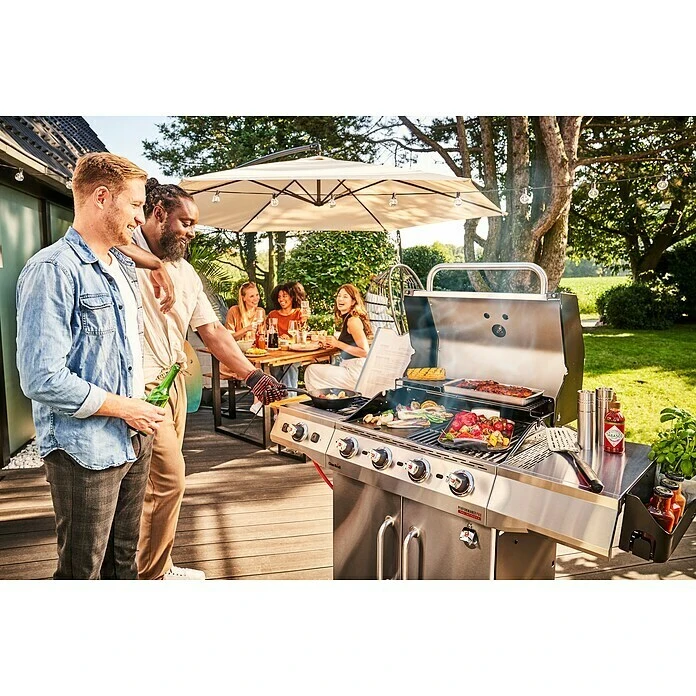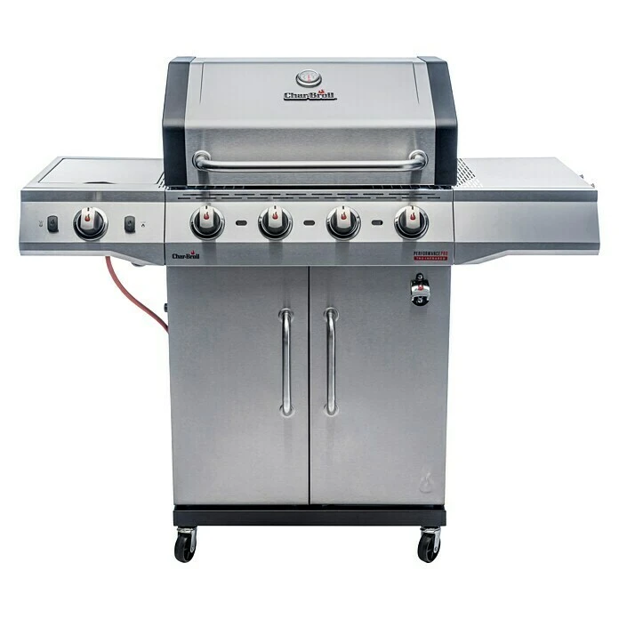 Der Char-Broil Gasgrill Performance Pro S4 ist ein kompakter Gasgrill bei dem Du auf nichts verzichten musst. Das patentierte TRU-Infrared™ Grillsystem verteilt die Hitze der vier verbrauchsarmen und rostfreien Edelstahlbrenner perfekt auf dem Grill – so wird das Grillgut bis zu 50% saftiger! Gestartet wird er per Knopfdruck mit der SureFire Zündung, über die jeder Brenner einzeln und unabhängig gezündet werden kann. Auf dem Seitenbrenner lassen sich problemlos selbstgemachte Suppen, Saucen oder Beilagen zubereiten. Der Grill ist aus hochwertigem Edelstahl gefertigt und damit absolut wetterfest. Eine, im Lieferumfang enthaltene gusseiserne Grillplatte erweitert die Möglichkeiten, die der Grill bietet. Für das gewisse Extra sorgen die roten LEDs an den Drehknöpfen. Dank des kompakten Designs findet der Char-Broil Gasgrill Performance Pro S4 überall ein geeignetes Plätzchen und kann mit dem Char-Broil Made2Match Zubehör auch problemlos nach eigenen Wünschen erweitert werden.