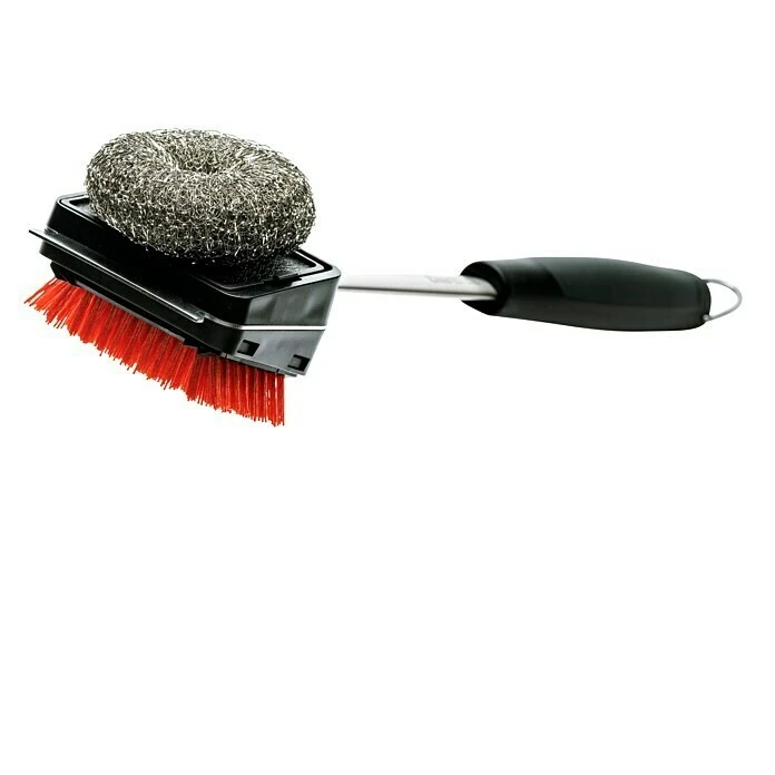 Mit der Char-Broil Grillbürste Hot & Cool Clean erzielen Sie außergewöhnliche Ergebnisse bei der Reinigung von heißen und kalten Grillrosten. Diese innovative Bürste verfügt auf der einen Seite über rote, mit feinen Schleifpartikeln versetzte Nylonborsten und auf der anderen Seite über ein Edelstahl-Scheuerpad. Verwenden Sie die Nylonbürste zur Reinigung von kalten Rosten und das Stahlpad für die Reinigung von Rosten, die noch heiß sind. Die haltbaren, laborgeprüften Borsten überstehen 15.000 Zyklen ohne zu brechen. Nach Abnutzung können die Bürstenköpfe dieser nachhaltigen Bürste ganz einfach ersetzt werden. Dank einer integrierten Schaberklinge lassen sich auch Ablagerungen und Reste problemlos entfernen.