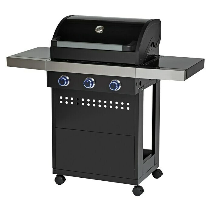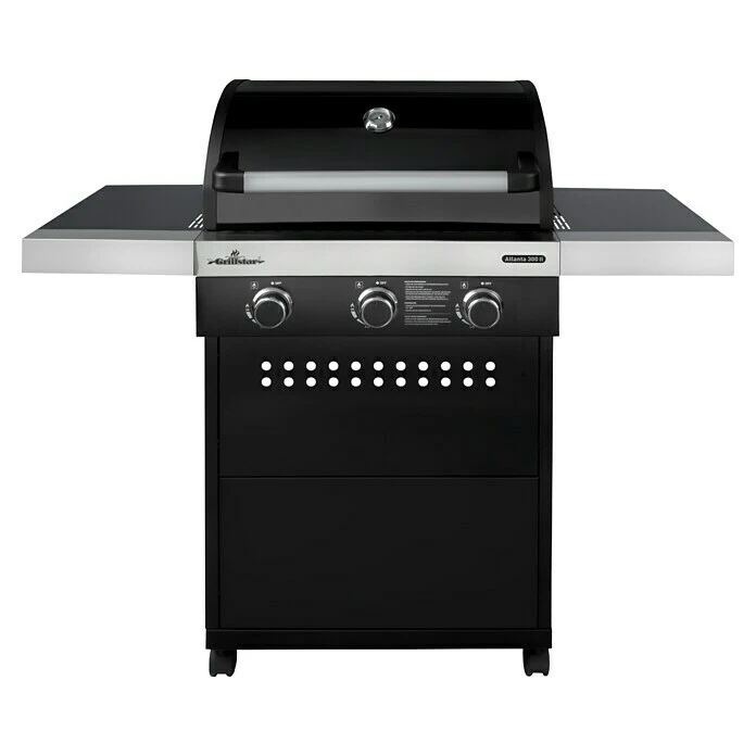 Der Grillstar Gasgrill Atlanta II 200 ist mit 3 Edelstahlgasbrennern ausgestattet, die eine Leistung von 10,5 kW ermöglichen. Auf dem großen Grillrost mit Abmessungen von 62 x 41,5 cm lassen sich viele leckere Speisen zubereiten. Die Brenner lassen sich ganz einfach mit der automatischen Zündung über den Reglerknopf entflammen. Der praktische Rollwagen ermöglicht das einfache Bewegen des Gasgrills. Zwei seitliche Ablagen bieten eine großzügige Ablagefläche, sodass das Grillgut oder auch die Grillzange griffbereit am Grill parat gelegt werden kann. Der Grill ist mit einer doppelwandigen Grillhaube ausgestattet, die in der Innenseite ein praktisches Thermometer zum Ablesen der Temperatur aufweist. So ist eine optimale Anpassung der Brennerleistung an das jeweilige Grillgut jederzeit möglich.