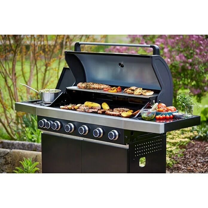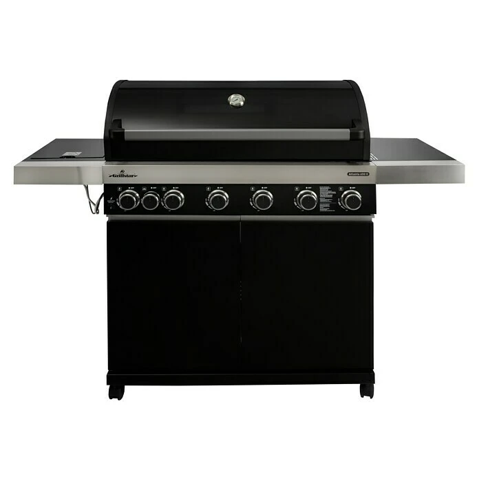 Mit dem Grillstar Gasgrill Atlanta II 650 lässt es sich perfekt in die Grillsaison starten. Der Gasgrill ist rundum ausgestattet: Neben 6 Edelstahlbrennern gibt es einen Seitenkocher für Beilagen sowie ein Warmhalterost. Die doppelwandige Grillhaube hält die Wärme und isoliert. Für bessere Sichtbarkeit sind die Regler LED-beleuchtet. Der Seitenbrenner hat eine Leistung von 3 kW – der gesamte Grill von 24 kW. Er ist zudem ausgestattet mit einem Automatik-Zünder sowie einem Thermometer für Präzision und optimale Ergebnisse. Der Grillrost ist emailliert. Durch sein schlichtes Design in Schwarz und Silber passt er auf jede Terrasse und in jeden Garten.