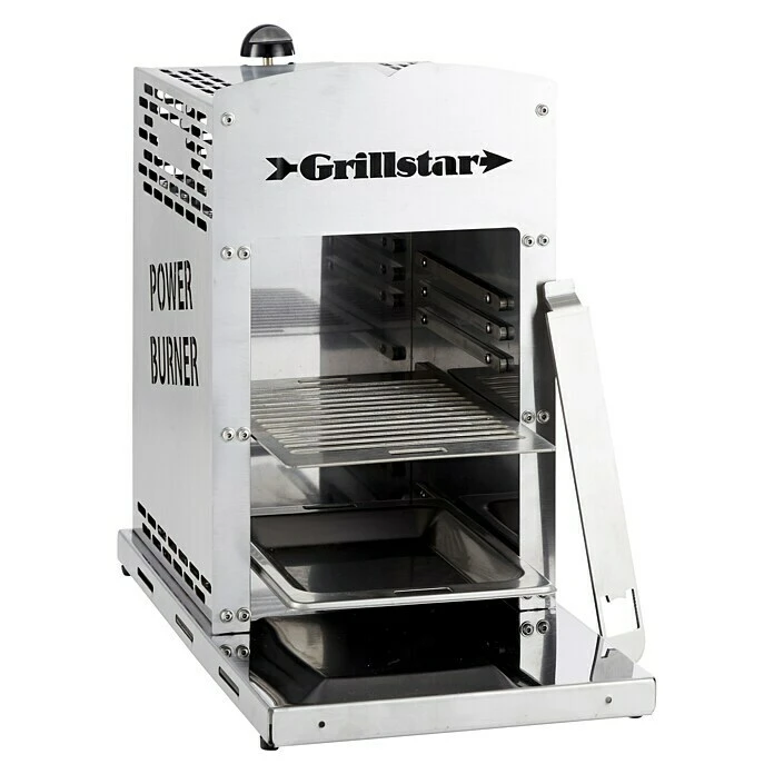 Der Gasgrill Power Burner von Grillstar ist mit keramischen Brennern und Piezo-Zündung ausgestattet und heizt in kurzer Zeit auf Temperaturen von über 800 °C auf. Der Grill arbeitet dabei ausschließlich mit Oberhitze und ermöglicht auf den Punkt gegartes Grillgut. Die extrem hohen Temperaturen auf der Oberfläche des Fleisches führen zu einer Art Karamellisierung, wodurch eine knusprige Kruste entsteht, das Innere des Steaks bleibt jedoch saftig und zart. Der Grillrost aus Edelstahl (25 x 17,5 cm) ist höhenverstellbar, so kann das Fleisch erst nah unter dem Brenner gegrillt und dann im unteren Bereich zur Ruhephase eingeschoben werden. Das Gasventil ist einstellbar und ermöglicht eine einfache Temperaturregulierung. Der Grill wird bereits vormontiert geliefert und kann schnell in Betrieb genommen werden.