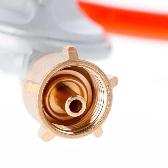 Der hochwertige Druckminderer mit Schlauch von Kingstone schaltet die Gaszufuhr, im Falle eines Lecks ab, damit wird Ihnen höchste Sicherheit garantiert.