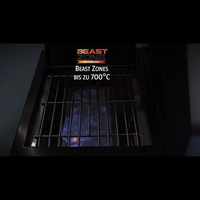 Im Seitentisch des Cliffs 450-1 ist die Beast Zone zu finden. Dieser Infrarot Brenner mit 3,5 kW Leistung gibt bis zu 700° C heiße Strahlung ab und eignet sich optimal, um Steaks in kürzester Zeit scharf anzubraten und mit einer leckeren, karamellisierten Kruste zu versehen.