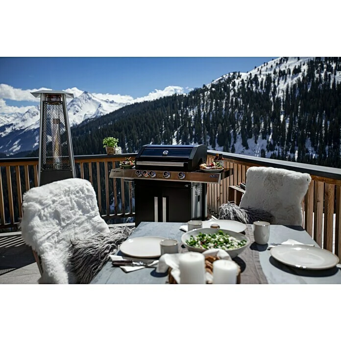 Befeuert wird der Rost von 4 langlebigen Edelstahlbrennern mit je 3,5 kW Leistung. Diese werden per Knopfdruck gezündet und von Flammenschutzblechen vor herabtropfendem Fett, Marinade oder Fleischsaft geschützt, sodass ein Aufflammen verhindert wird.