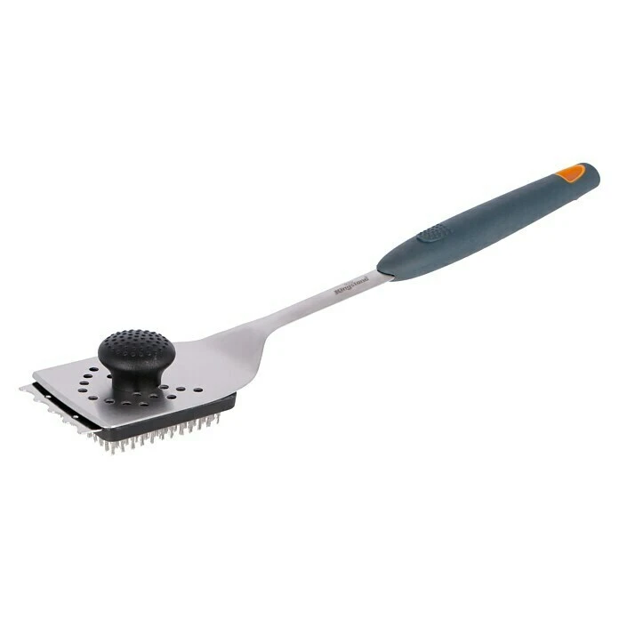 Das Kingstone 3 in 1 Multitool vereint Bratenheber, Grillbürste und Grillrostschaber in einem handlichen Werkzeug. Der Schaber kann einfach und schnell auf den Wender aufgesetzt werden, sodass dieser als Grillrostschaber fungiert und ein einfaches Reinigen des Rostes ermöglicht. Dank des ergonomischen Griffs liegt der Schaber sehr gut in der Hand und kann mit der Aufhängeöse auch leicht verstaut werden.