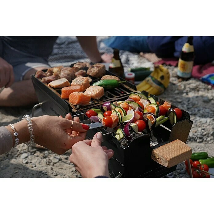 Mit den Knister Grillspießen lassen sich Spießgerichte wie Schaschlik noch einfacher zubereiten. Sie sind komplett aus Edelstahl gefertigt und somit spülmaschinenfest. Durch eine kleine Einkerbung im Griff können sie stets sicher auf dem Knister Grill abgelegt werden, sodass sie nicht vom Grill rollen und einfach gedreht werden können. Zudem lässt sich bei Verwendung der Spieße auf den Knister Grill Modellen auf der unteren Ebene noch ein kleines Grillrost nutzen und so auf 2 Ebenen grillen.