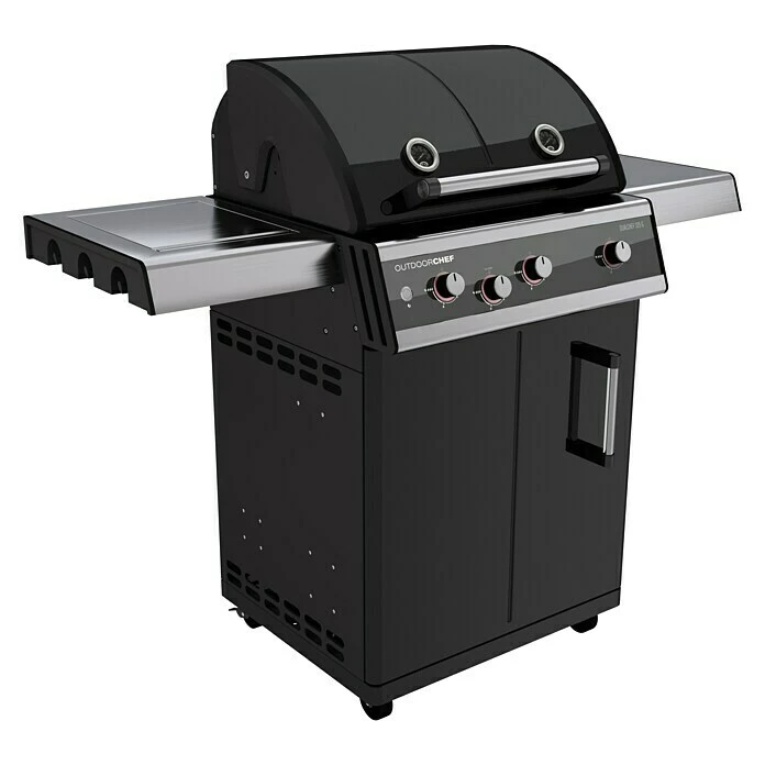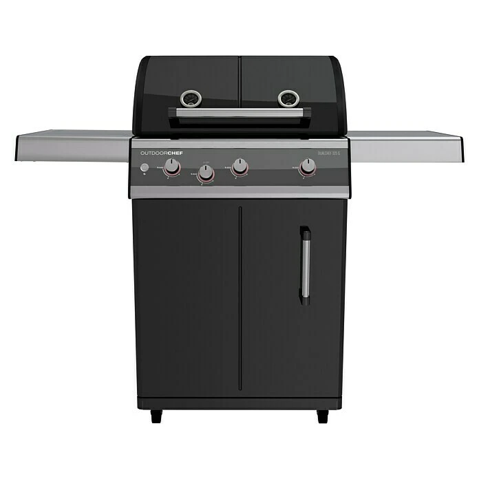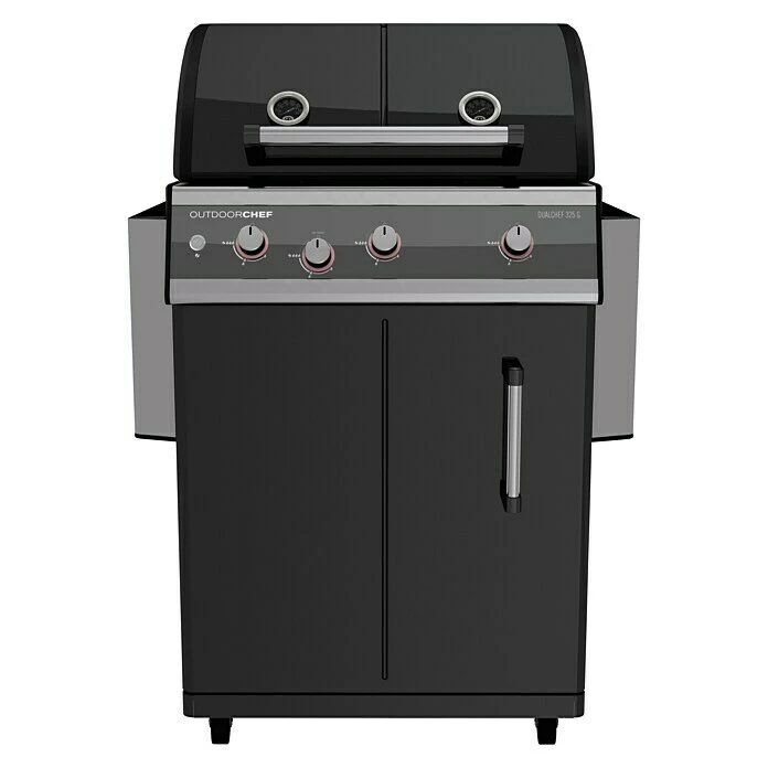 Der Outdoorchef Gasgrill Dualchef 325 G verwandelt jeden Garten im Handumdrehen in einen Ort für eine Grillparty mit Familie und Freunden und überzeugt dabei mit seinem edlen, schwarzen Design. Seine zwei Gusseisen Grillroste mit einer Gesamtgröße von 60,9 x 44 cm lassen sich auf verschiedenste Arten flexibel nutzen. Wollen Sie viel Grillgut mit gleicher Temperatur und Grillmethode grillen? Kein Problem, nutzen Sie die gesamte Größe der Gusseisen Roste. Steht Ihnen hingegen der Sinn nach Grillgut mit unterschiedlichen Temperaturanforderungen oder Grillmethoden? Auch kein Problem. Mit dem DGS Zone Divider lässt sich der Grill in 2 Temperaturzonen aufteilen. So können Sie z.B. auf der einen Seite direkt mit hoher Hitze grillen, während Sie auf der anderen Seite indirekt mit geringer Hitze ein anderes Grillgut zubereiten. Zudem wird beim Dualchef 325 G Sicherheit groß geschrieben. Zum einen reduzieren die DGS Protection Bars das Risiko eines Fettbrandes durch Abdeckung der Brenner und zum anderen zeigen die beleuchteten Drehregler sofort an, ob ein Gasventil geöffnet ist oder nicht. Der Dualchef 325 G vereint Flexibilität, Sicherheit und Grillvergnügen sodass keine Wünsche offen bleiben. Dabei kommen allerdings edles Design und Zusatzfeatures wie Seitenkocher, Warmhalterost, klappbare Seitenablagen und ein großer Unterschrank für Zubehör und Gasflasche nicht zu kurz. Maße (Seitentische ausgeklappt): 139 x 123 x 63 cm (B x H x T); Maße (Seitentische eingeklappt): 84 x 123 x 63 cm (B x H x T).