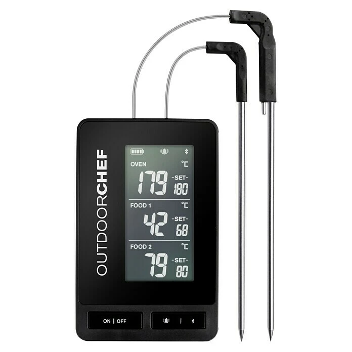 Das per App gesteuerte Outdoorchef Grillthermometer Gourmet Check Pro überträgt drei Kern- und Umlufttemperaturen direkt aufs Smartphone oder Tablet und sorgt so für erstklassige Garergebnisse. Zwei Messfühler informieren über die Temperatur im Fleisch und im Grill und senden die Werte über eine Reichweite von 100 Metern via Bluetooth-Technologie ans Handy. Der Gourmet Check Pro ist regenwasserfest und die Messfühler können in der Spülmaschine gereinigt werden. Die App ist kostenlos im App- und Google Play Store erhältlich.