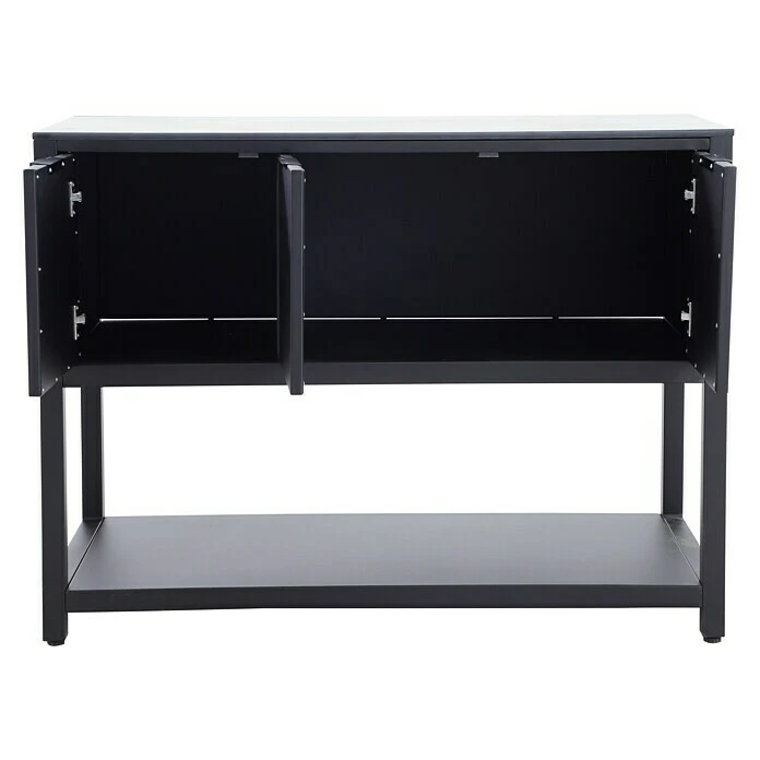 Das Grillküchen Sideboard Melina von Sunfun besteht aus pulverbeschichtetem Aluminium. Die 12 mm starke Arbeitsplatte besteht aus Hochdrucklaminat, welches sich optimal für den Außenbereich eignet, da es sehr robust und verschleißfest ist. Das Sideboard besitzt drei voneinander getrennte Stauräume, die jeweils mit Türen verschlossen werden können. Zusätzlich lassen sich auf einem Regalboden weitere Dinge ablegen. Die verwendeten Materialien sind äußerst pflegeleicht. Um die Optik von Gartenmöbeln langfristig schön und frisch zu erhalten empfiehlt sich eine auf das Material abgestimmte, regelmäßige Reinigung und Pflege. Möbel werden ohne Dekoration geliefert.