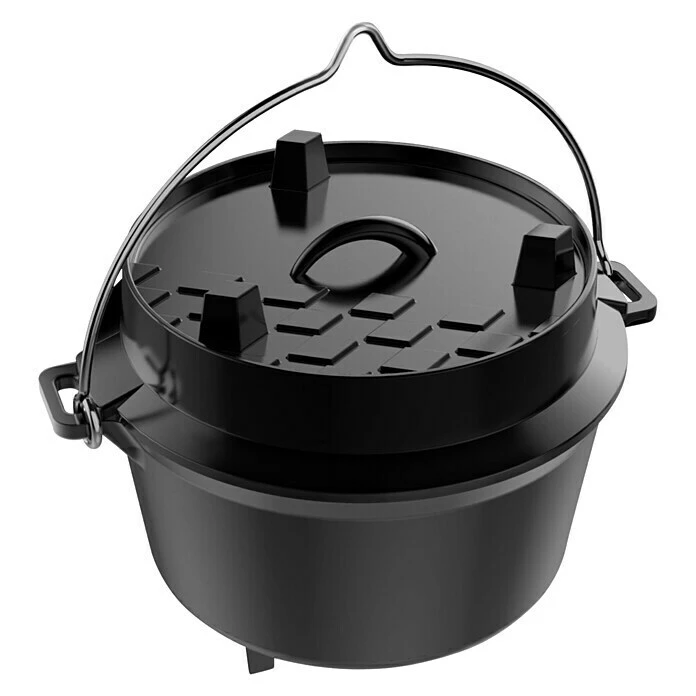 Mit dem Tepro Dutch Oven S macht jeder Grillabend noch mehr Freude. Das hilfreiche und funktionale Utensil ist aus hochwertigem, matt emailliertem Gusseisen gefertigt. Der Topf besitzt einen extra hohen Rand, einen praktischen Deckel mit Griff, welcher gleichzeitig auch als Pfanne verwendbar ist, und eine verschließbare Öffnung für Temperaturfühler. Der integrierte Henkel und die stabilen Standfüße runden das Design optimal ab. Der Dutch Oven eignet sich zum Backen, Braten und Kochen. Holzkohlen oder Holzkohlenbriketts werden auf den Deckel und unter den Kessel gelegt, sodass sich das Gusseisen gleichmäßig erhitzt und die Hitze schonend auf die Speisen im Inneren abgibt. Der Dutch Oven garantiert Spaß und Bewunderung auf jedem Grillabend.