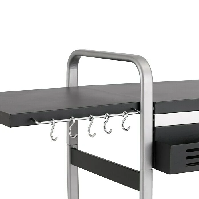 Das Tepro Universal Untergestell ist das Multitalent bim Grillen. Als stabiles Untergestell für zahlreiche Tischgrills tut es ebenso seinen Dienst, wie als Beistell-, Servier- oder Vorbereitungstisch. Die große Arbeitsfläche und die Arbeitshöhe von ca. 91 cm sprechen für den Tisch. Ebenso, das sich viel Zubehör in ihm verstauen lässt. Er besitzt neben der Arbeitsfläche einen Aufbewahrungskorb, mehrere Haken zum Aufhängen von Grillbesteck und einen Handtuch-, bzw. Küchenrollenhalter. Durch seine Räder ist er zudem fahrbar, sodass er im kompletten Garten eingesetzt werden kann.