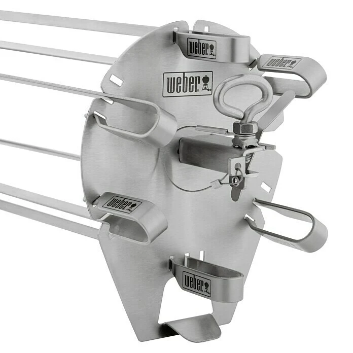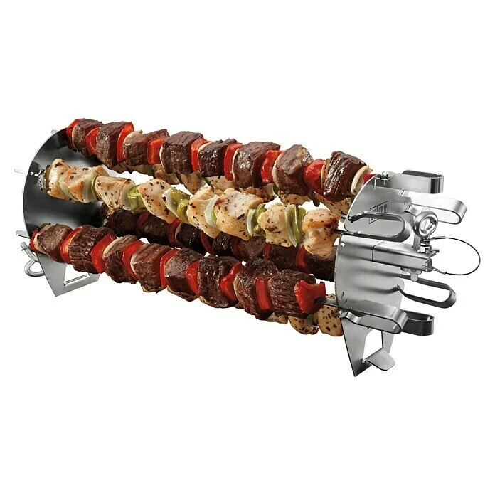 Mit diesem Grillspieße Set der Weber Crafted Siere gelingen Schaschlik, Garnelen, Gemüse und weitere Spießgerichte perfekt. Die 6 Spieße und die Haltung sind komplett aus Edelstahl gefertigt und somit langlebig und leicht in der Spülmaschine zu Reinigen. Für die Nutzung wird die Halterung auf einen Drehspieß geschoben und die einzelnen Grillspieße in die Halterung gesteckt. So wird das Grillgut von allen Seiten gleichmäßig gegrillt. Hinweis: Für den Gebrauch ist ein passender Drehspieß erforderlich, der nicht im Lieferumfang enthalten ist.