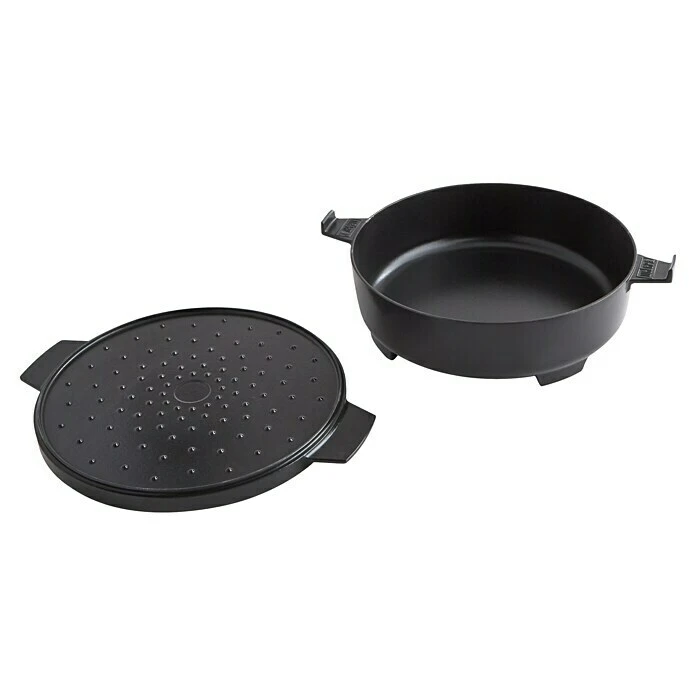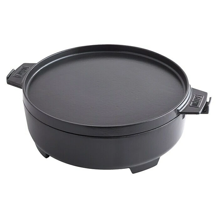 Der Weber Dutch Oven 2in1 bietet unbegrenzte Möglichkeiten auf dem Grill. Der 6,8-Liter-Dutch-Oven sorgt für eine gleichmäßige Wärmeverteilung und Wärmespeicherung – perfekt für zarte Braten oder aromatische Suppen und Eintöpfe. Der Deckel lässt sich auch als flache Grillplatte zum Toasten von Sandwiches oder zum Grillen von Hühnerbrust und Gemüse verwenden. Beide Teile können zusammen oder separat verwendet werden. Die porzellanemaillierte Oberfläche lässt sich leicht reinigen und die beiden Teile sind für eine platzsparende Aufbewahrung stapelbar. HINWEIS: Nur der Dutch Oven Sockel passt in die Gourmet BBQ System Grillroste.