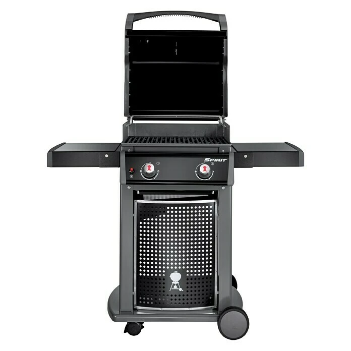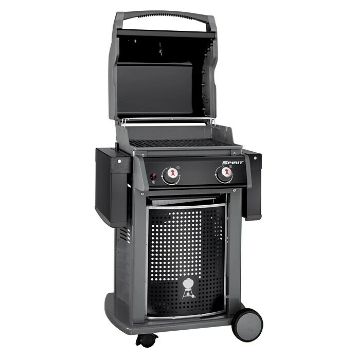 Der Weber Gasgrill Spirit E 210 Classic ist das ideale Einsteigermodell mit Profi-Ausstattung und optimalen Komfort. Die 2 getrennt regelbaren Brenner sind stufenlos einstellbar. Dadurch wird eine bestmögliche Heizleistung beim indirekten und direkten Grillen ermöglicht. Die Piezo-Zündung und das Crossover-Zündsystem garantiert ein einfaches und sicheres Zünden. Der emaillierte Deckel verfügt über ein integriertes Thermometer. Dadurch ist eine Temperaturkontrolle möglich. Die porzellanemaillierten Aromaschienen bieten außergewöhnlichen Grillgenuss und bieten Schutz vor Fettbrand. Dieser Gasgrill ist mit herunterklappbaren Seitentische ausgestattet, die jede Menge Arbeits- und Ablagefläche für Grillgut, Grillbesteck oder auch Teller bieten. Im funktionalen Unterschrank kann eine 5 kg Gasflasche problemlos platziert werden. Dank der 2 feststellbaren Lenkrollen und 2 wetterfesten Räder ist der Grill leicht beweglich und damit überall im Außenbereich einsetzbar.
