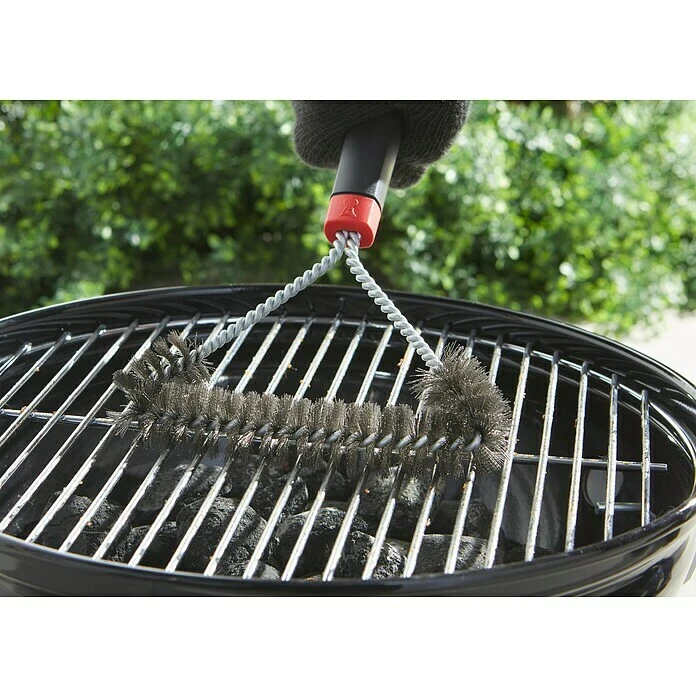 Mit der dreiseitigen Weber Grillbürste lässt sich der Grill im Handumdrehen reinigen. Durch die breite Bürste sind selbst große Roste im Nu wieder sauber. Selbst Zwischenräume und schmale Stellen sind dank der dreieckigen Form gut zu erreichen und zu säubern. Mit ihrer Länge von knapp 30 cm ist sie zudem so handlich, dass sie nicht viel Platz benötigt und so immer griffbereit ist. Mit einer praktischen Schlaufe am Ende des Griffs lässt sie sich einfach aufhängen.